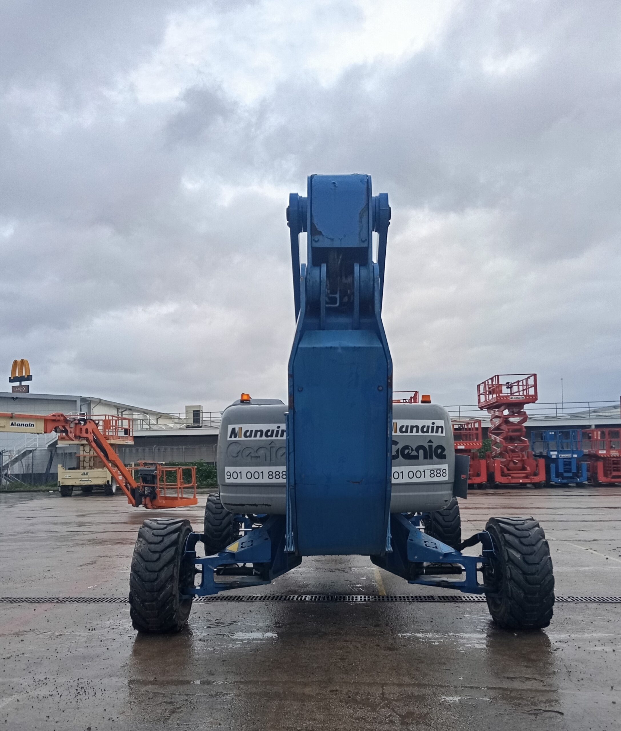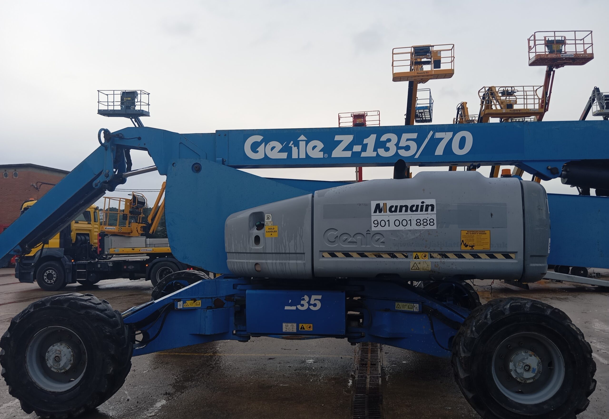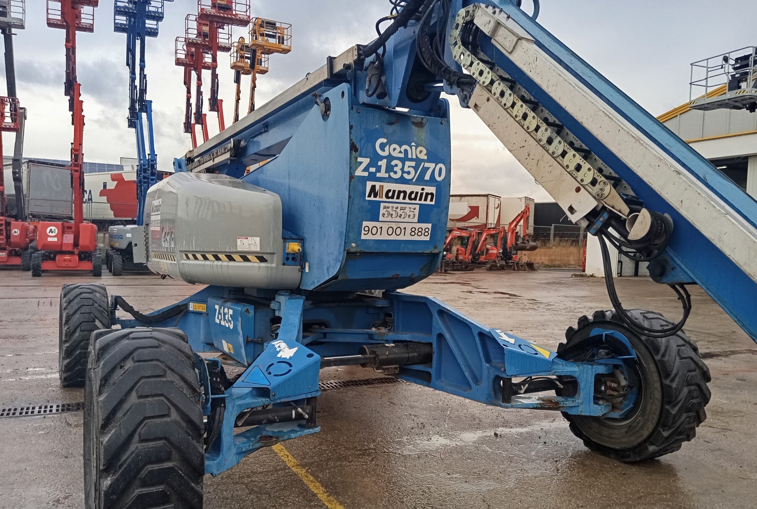Diesel articulated boom lift with a working height of 43.15m. Excellent horizontal reach and horizontal rotation of the boom. Turret rotation of 360º. Allows work at zero height.