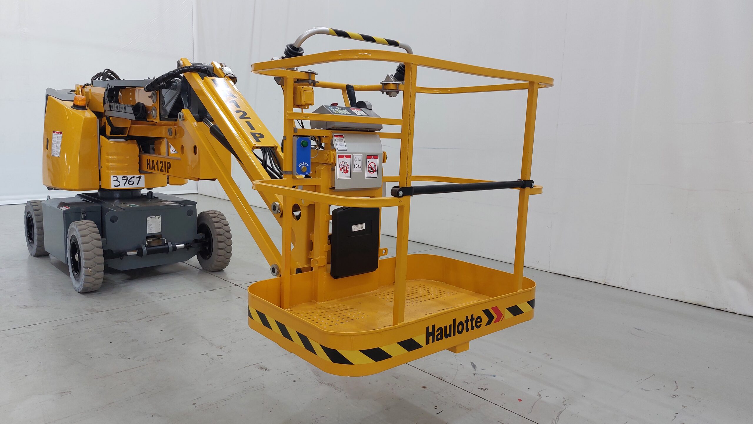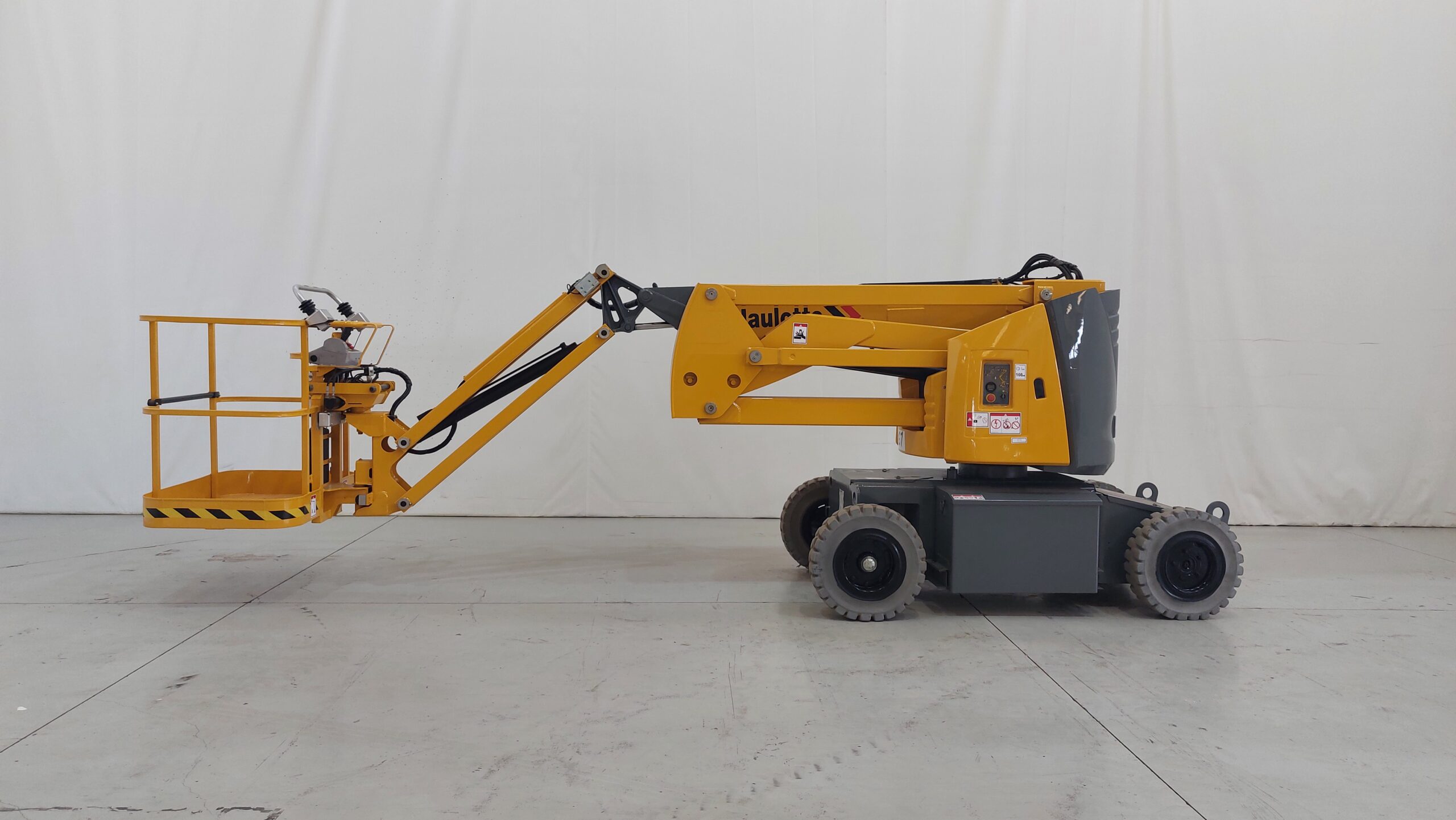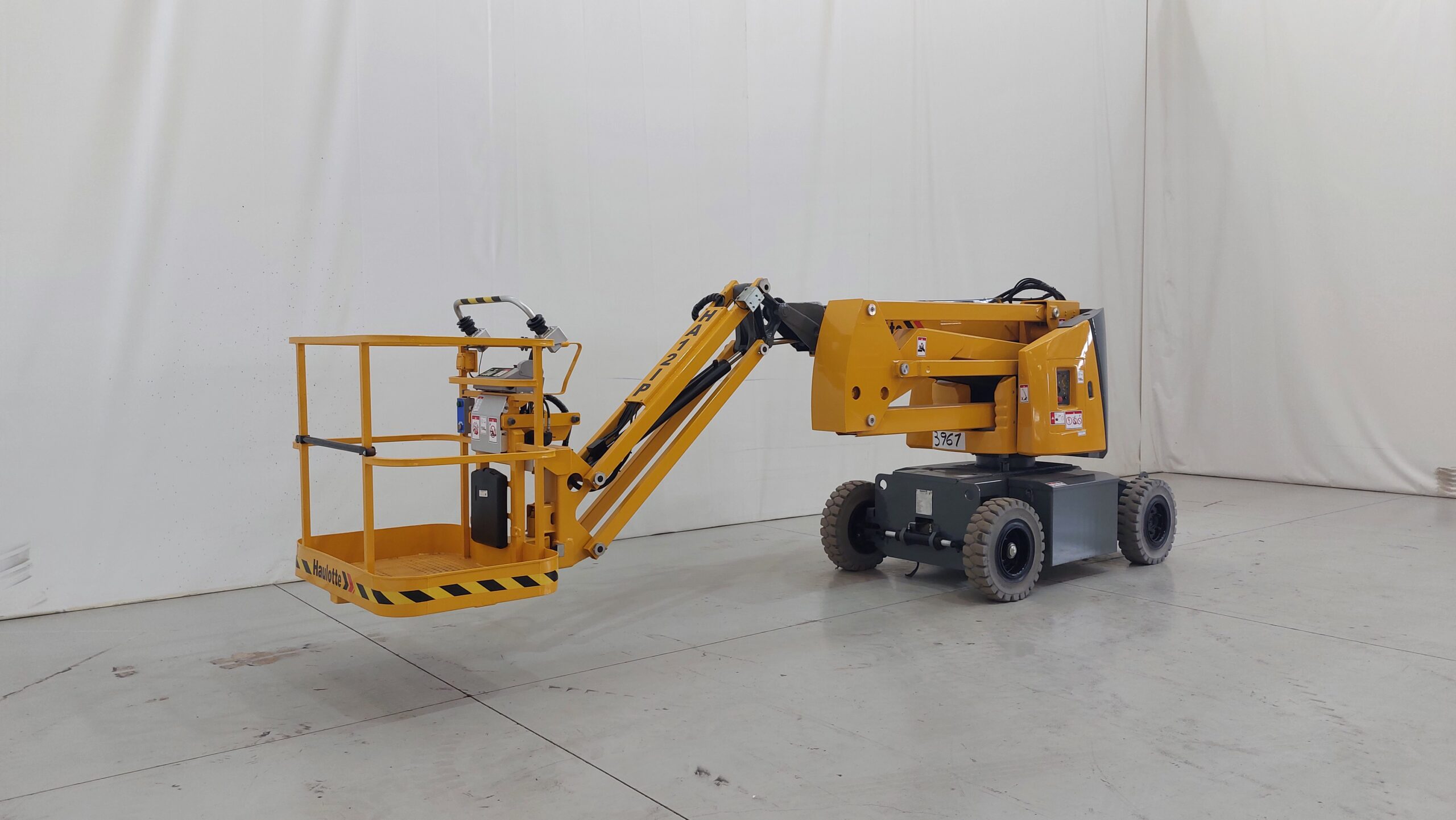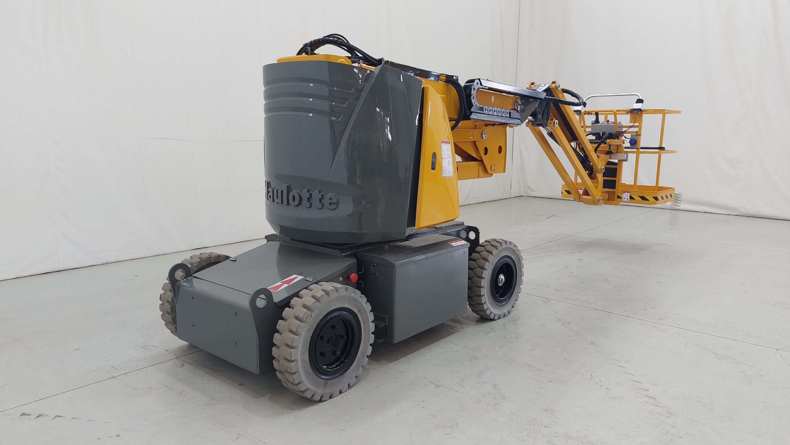 Electric articulated boom platform with a working height of 12m. Ideal for industry professionals. Turret rotation of 355º.